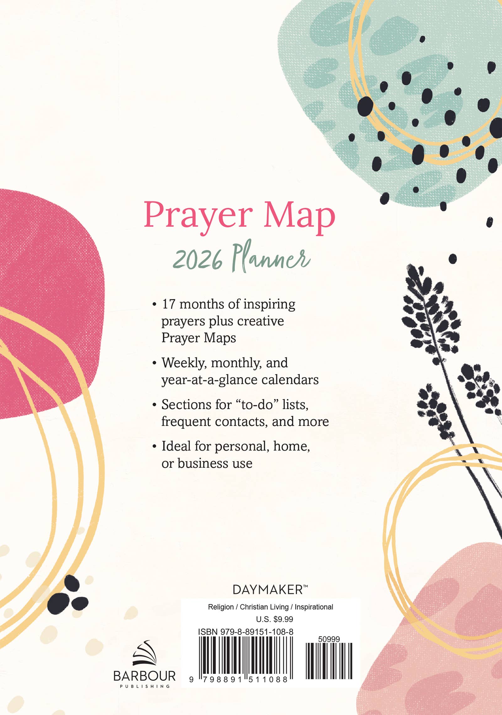 Barbour's bestselling The Prayer Map journal has encouraged women of all ages to spend purposeful one-on-one time with their heavenly Father. And now The Prayer Map forms the basis for this lovely 17-month creative planner. Ideal for personal, home, business, or school use, this delightful 2026 planner includes a practical and inspiring blend of creative monthly prayer maps (guides that encourage thoughtful, meaningful conversation with God), plus weekly heartfelt prayers and scripture selections. Featuring monthly and weekly calendars, a year-at-a-glance section, pages for frequent contacts, and more, this planner offers an important reminder as you organize the details of every day: God hears and cares about your every prayer!