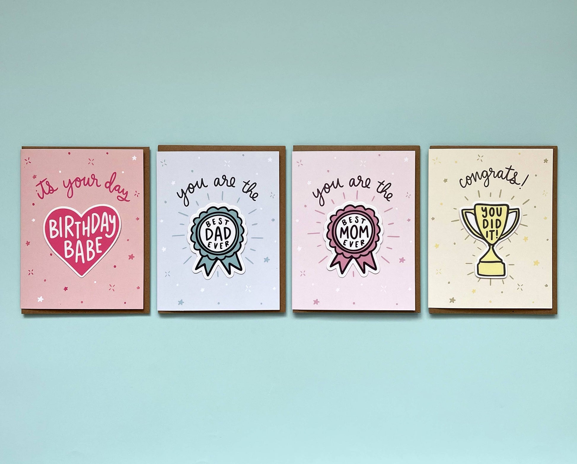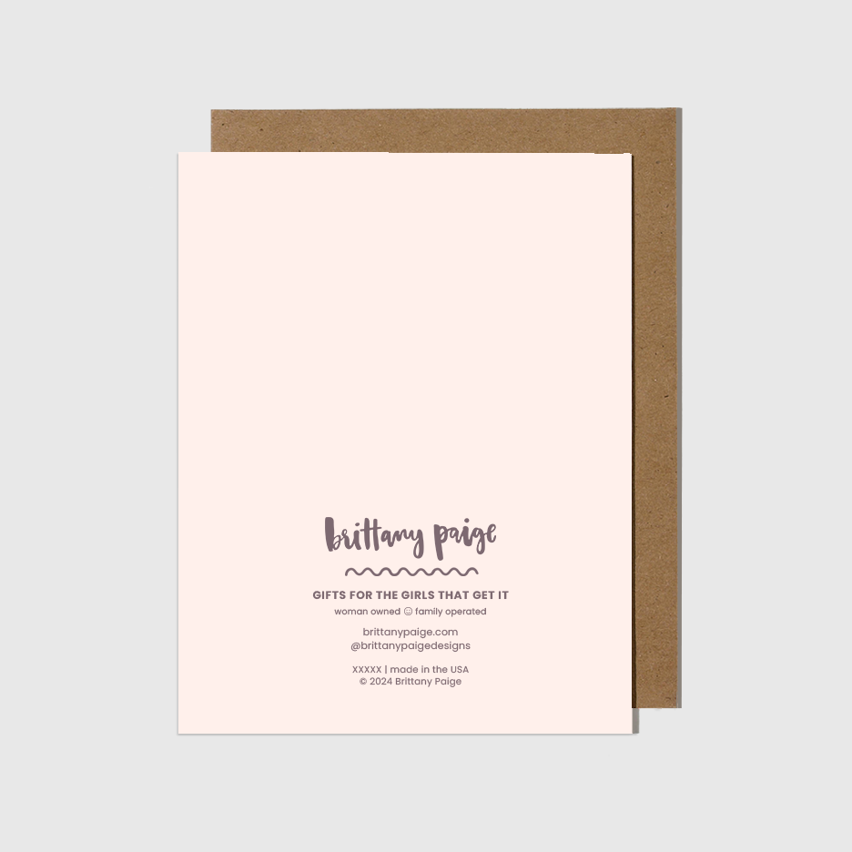 This card includes a removable 2.75” decal sticker. Card is A2 size (4 1/4" x 5 1/2"). Blank inside. Comes with kraft brown envelope. Printed on High Quality Paper