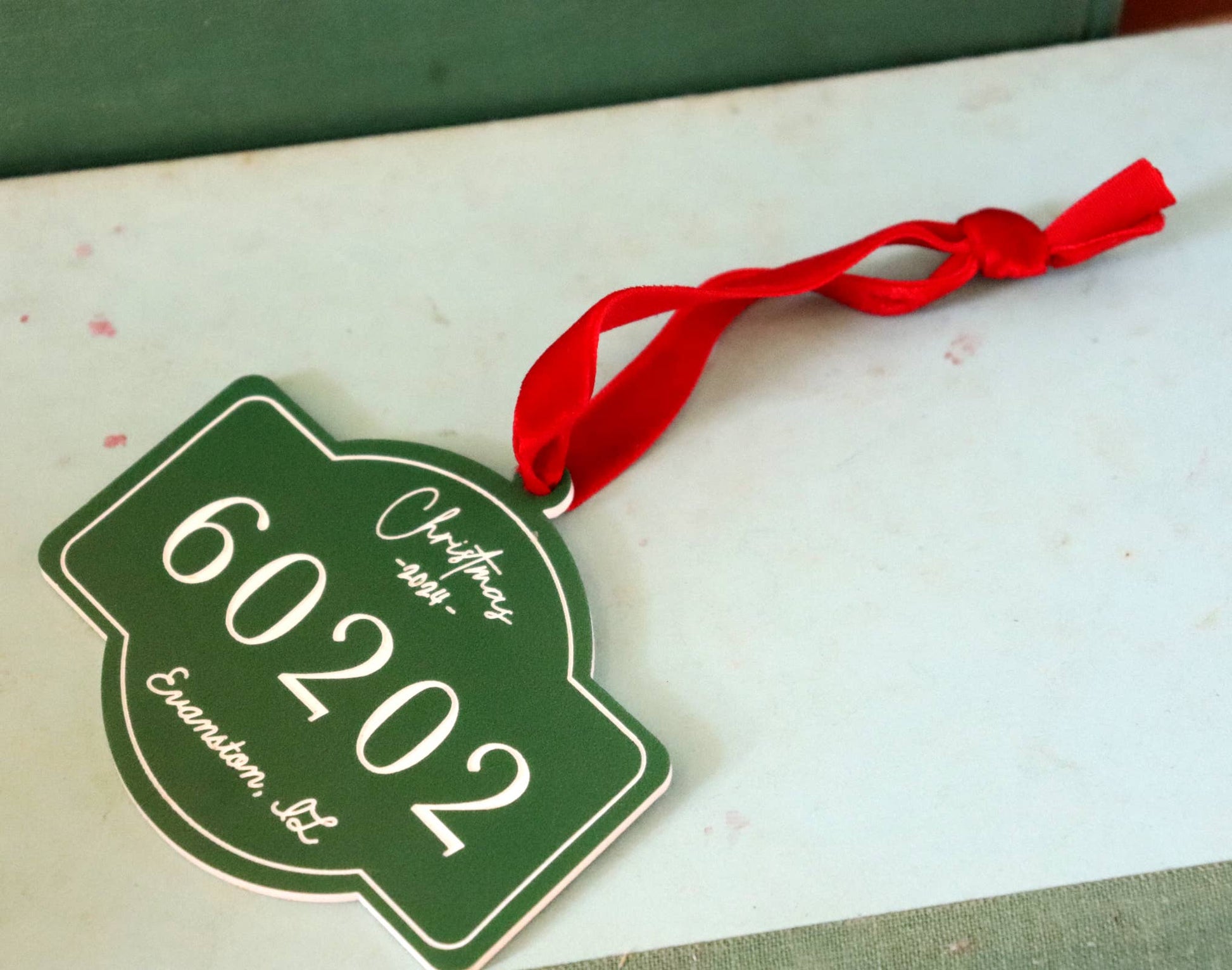 The zip code ornament is personalized with the zip code and city of your choice. Made of green and white 1/8" acrylic, laser engraved.