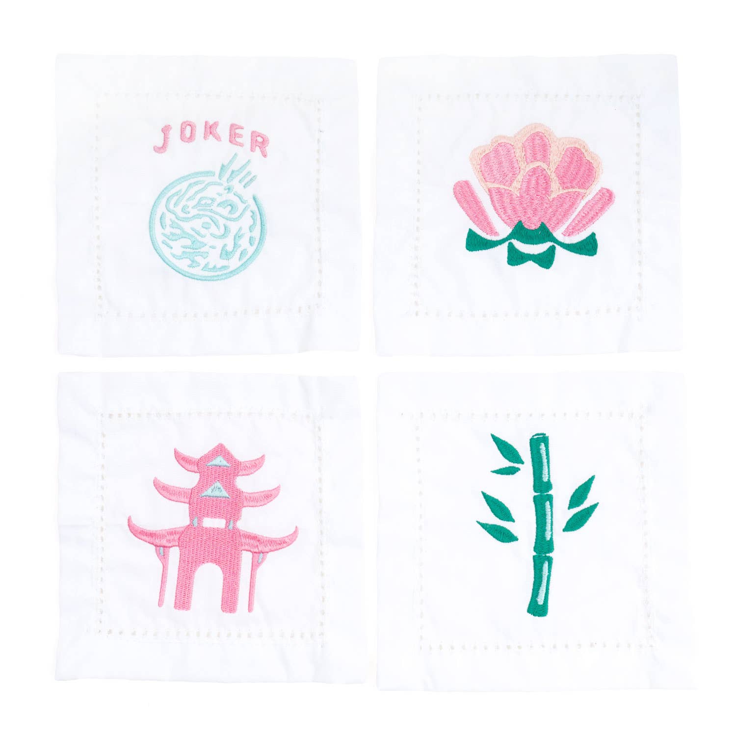 Enhance any gathering with the Mahjong Embroidered Cocktail Napkin Set. These chic and sporty napkins infuse fun into ordinary dinner parties in a stylish and fashionable way.
